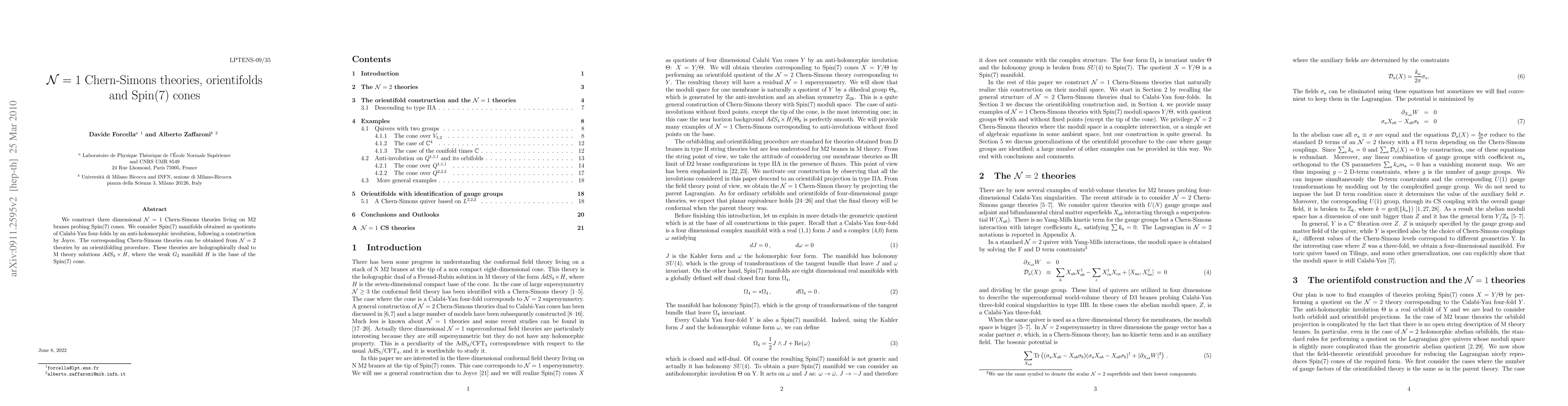 This paper constructs N=1 Chern-Simons theories on M2 branes in three dimensions within Spin(7) cones derived from Calabi-Yau four-folds. The theories arise from orientifold constructions of N=2 theories and are holographically dual to M-theory solutions featuring AdS_4 times a weak G_2 manifold.