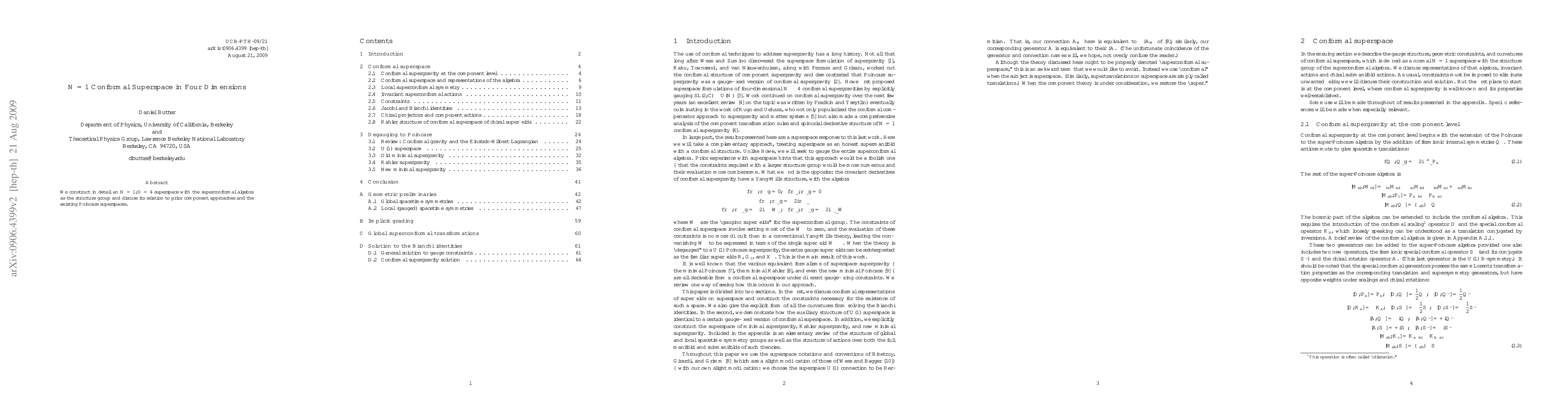 This paper meticulously builds an N=1, D=4 superspace with superconformal algebra as its structure group, detailing its connections to previous component methods and existing Poincaré superspaces.