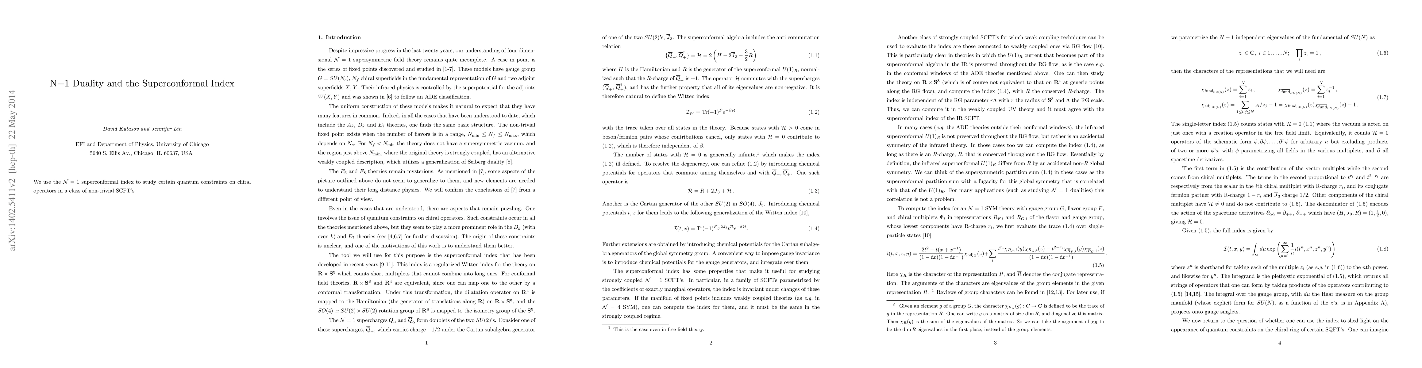 Summary: This paper explores the application of the N=1 superconformal index to investigate quantum constraints on chiral operators within a specific class of non-trivial superconformal field theories (SCFTs).