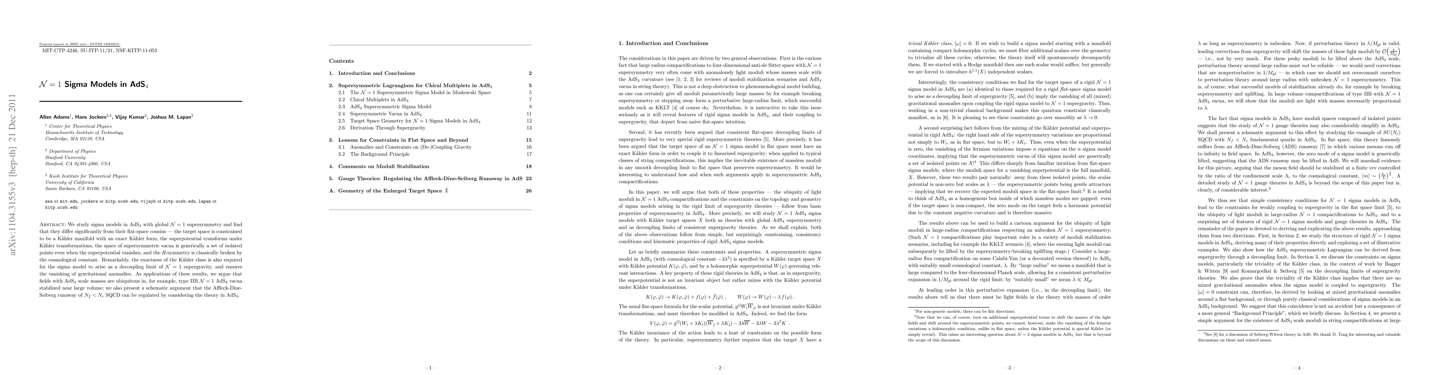 We study sigma models in AdS_4 with global N=1 supersymmetry and find that they differ significantly from their flat-space cousins -- the target space is constrained to be a Kahler manifold with an exact Kahler form, the superpotential transforms under Kahler transformations, the space of supersymmetric vacua is generically a set of isolated points even when the superpotential vanishes, and the R-symmetry is classically broken by the cosmological constant. Remarkably, the exactness of the Kahler class is also required for the sigma model to arise as a decoupling limit of N=1 supergravity, and ensures the vanishing of gravitational anomalies. As simple applications of these results, we argue that fields with AdS_4 scale masses are ubiquitous in, for example, type IIB N=1 AdS_4 vacua stabilized near large volume; we also show that the Affleck-Dine-Seiberg runaway of N_f < N_c SQCD is regulated by considering the theory in AdS_4.