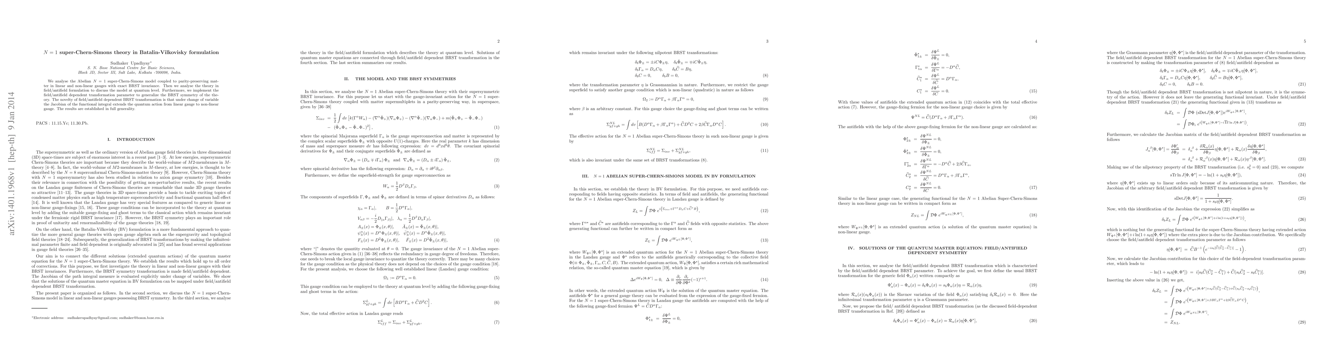 Researchers analyzed an N=1 super-Chern-Simons model with exact BRST invariance in both linear and non-linear gauges, extending the theory to quantum level using field/antifield formulation.