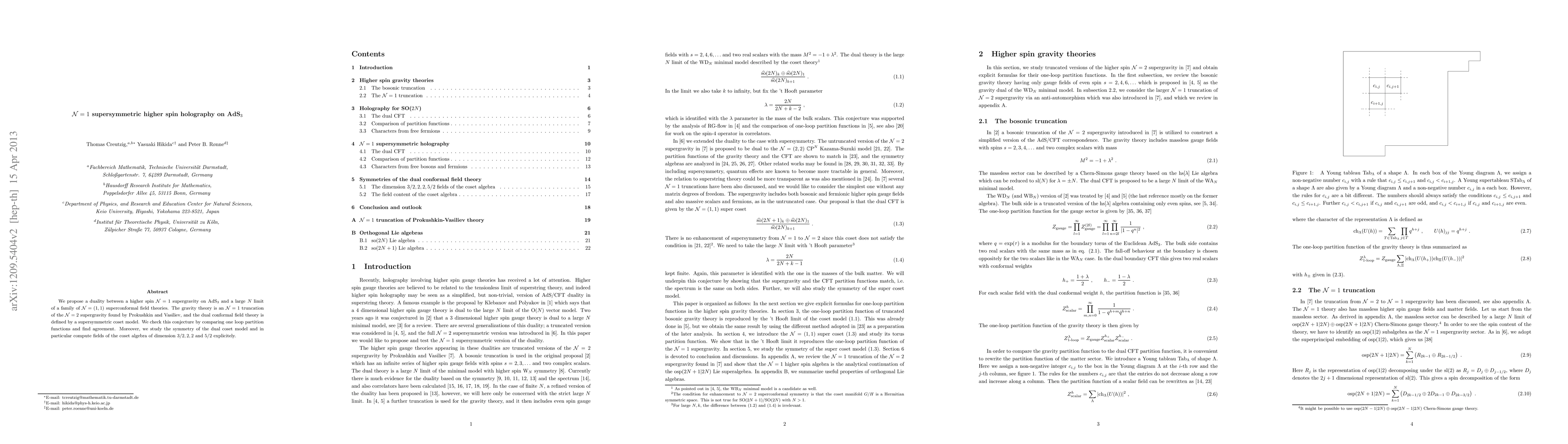 This paper proposes a duality between N=1 higher spin supergravity on AdS_3 and a large N limit of N=(1,1) superconformal field theories, verified by matching one-loop partition functions. It also computes specific fields of the dual coset algebra.
