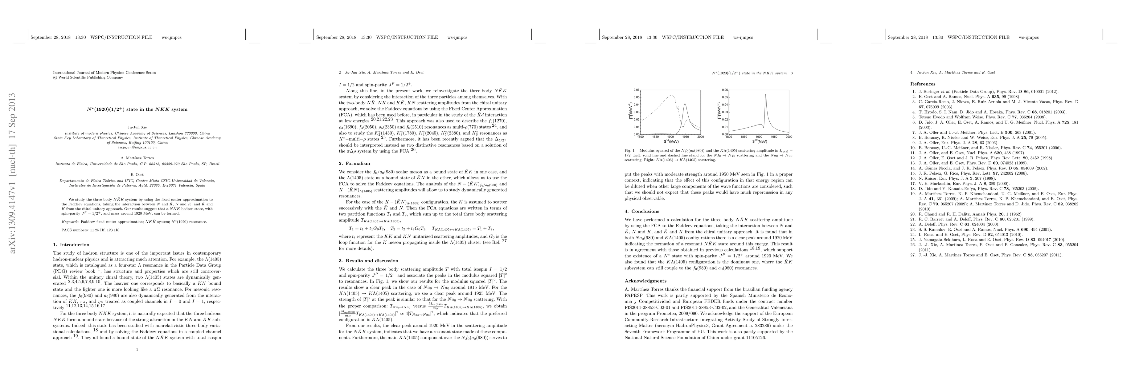 We study the three body $N \bar{K} K$ system by using the fixed center approximation to the Faddeev equations, taking the interaction between $N$ and $\bar{K}$, $N$ and $K$, and $\bar{K}$ and $K$ from the chiral unitary approach. Our results suggest that a $N\bar{K}K$ hadron state, with spin-parity $J^P=1/2^+$, and mass around 1920 MeV, can be formed.