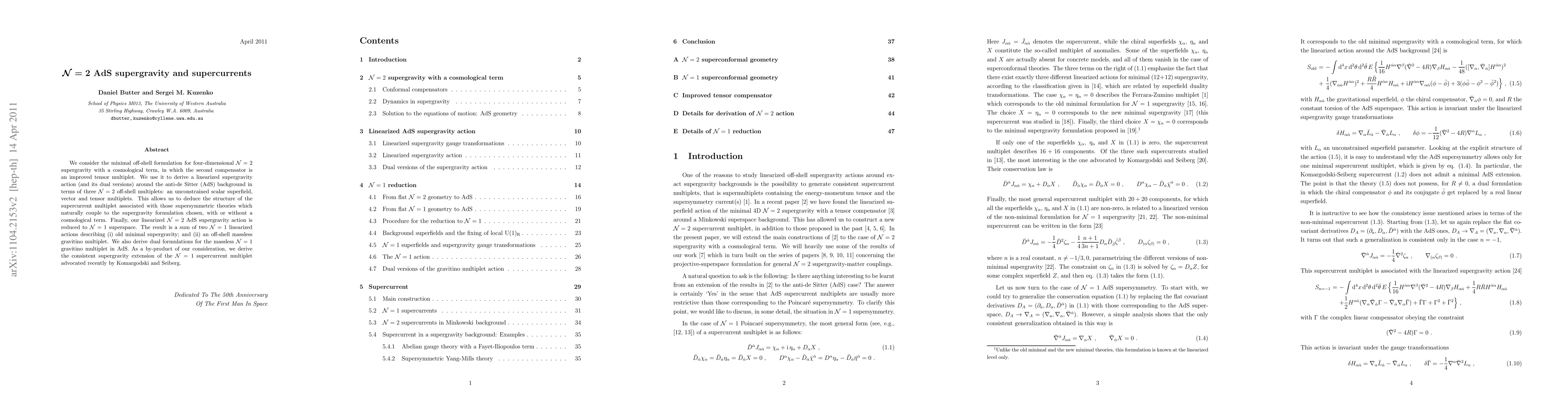 This paper explores the minimal off-shell formulation of four-dimensional N=2 supergravity with a cosmological term, deriving a linearized supergravity action around an AdS background and identifying the associated supercurrent multiplet structure. It reduces the N=2 AdS supergravity to N=1 superspace, leading to two N=1 linearized actions and deriving dual formulations for the N=1 gravitino multiplet.