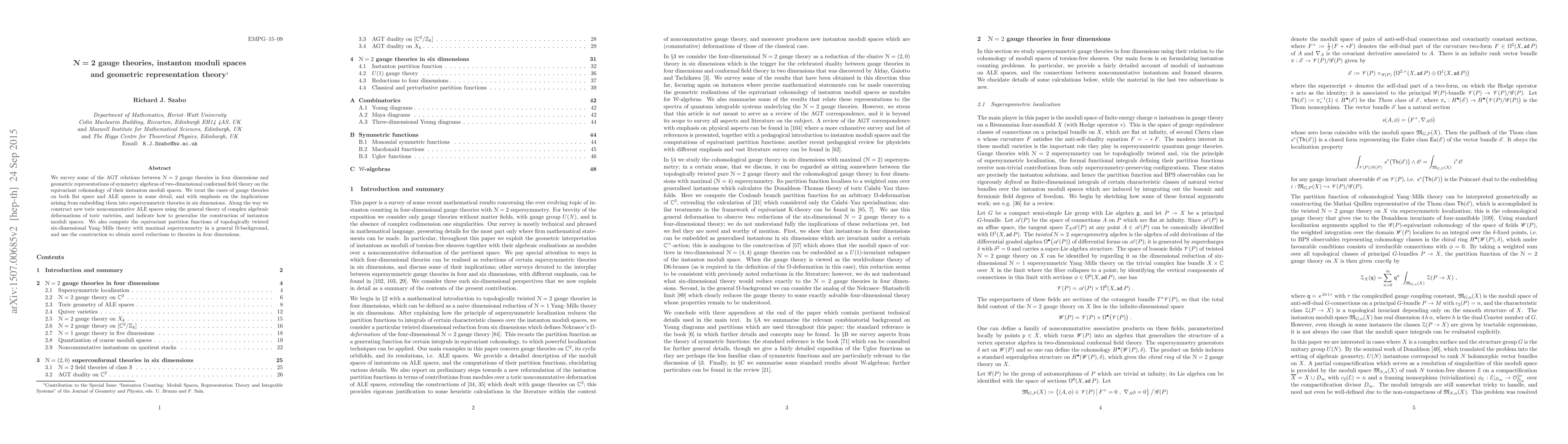 This paper surveys the AGT relations connecting N=2 gauge theories in four dimensions to conformal field theories and explores their instanton moduli spaces. It constructs new toric noncommutative spaces and computes partition functions for six-dimensional supersymmetric theories, leading to novel four-dimensional reductions.