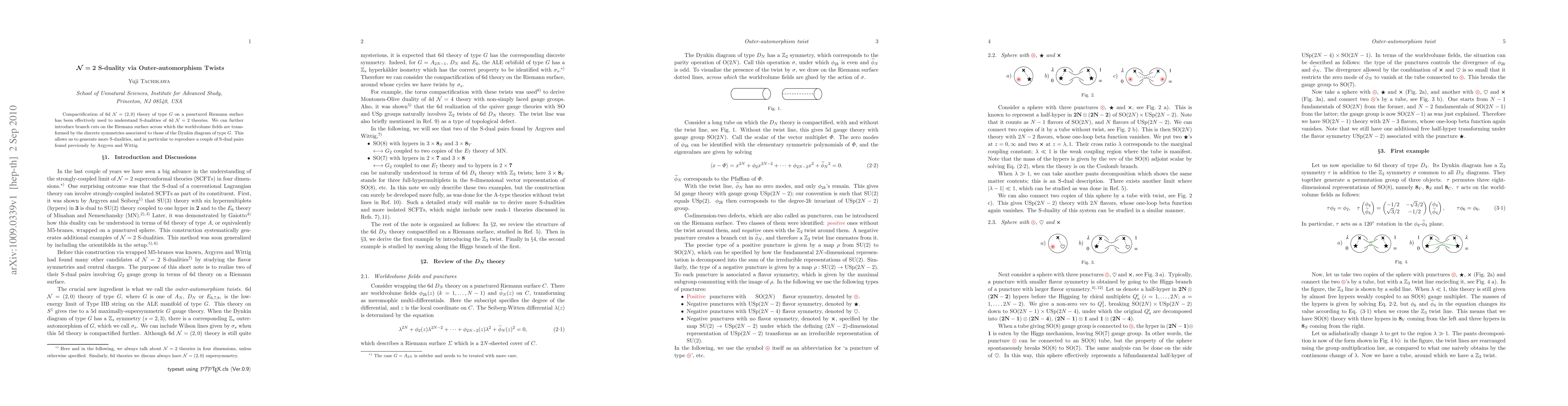 Compactification of 6d N=(2,0) theory of type G on a punctured Riemann surface has been effectively used to understand S-dualities of 4d N=2 theories. We can further introduce branch cuts on the Riemann surface across which the worldvolume fields are transformed by the discrete symmetries associated to those of the Dynkin diagram of type G. This allows us to generate more S-dualities, and in particular to reproduce a couple of S-dual pairs found previously by Argyres and Wittig.