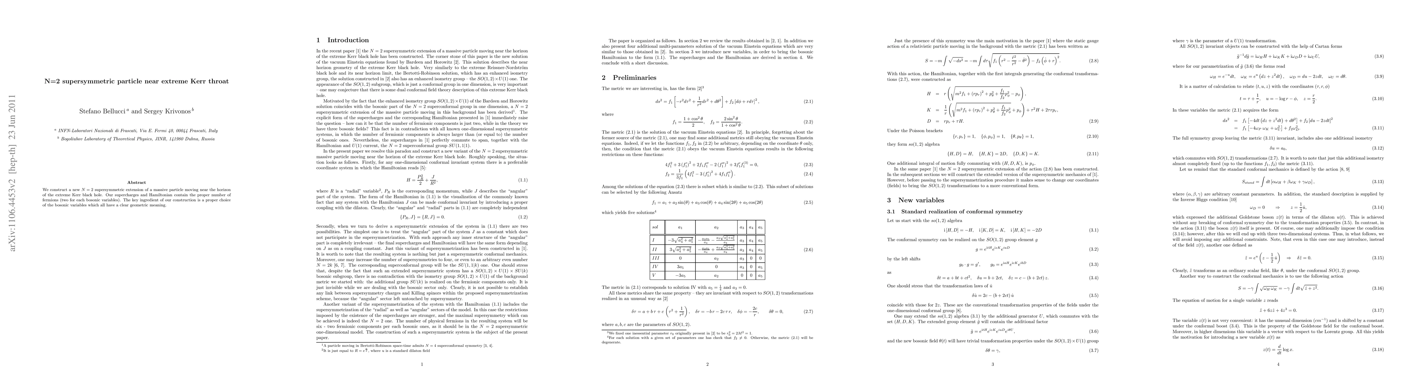 We construct a new N=2 supersymmetric extension of a massive particle moving near the horizon of the extreme Kerr black hole. Our supercharges and Hamiltonian contain the proper number of fermions (two for each bosonic variables). The key ingredient of our construction is a proper choice of the bosonic variables which all have a clear geometric meaning.