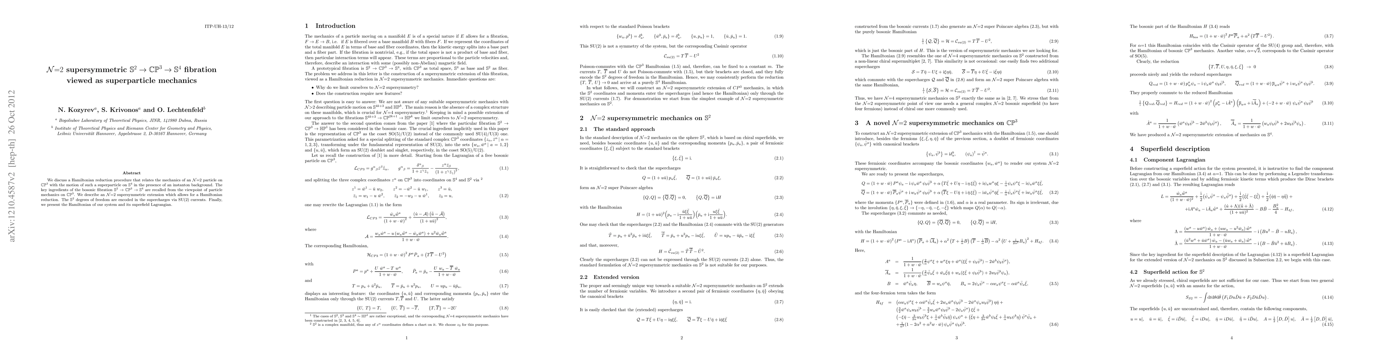 We discuss a Hamiltonian reduction procedure that relates the mechanics of an N=2 particle on CP^3 with the motion of such a superparticle on S^4 in the presence of an instanton background. The key ingredients of the bosonic fibration S^2 -> CP^3 -> S^4 are recalled from the viewpoint of particle mechanics on CP^3. We describe an N=2 supersymmetric extension which allows for a Hamiltonian reduction. The S^2 degrees of freedom are encoded in the supercharges via SU(2) currents. Finally, we present the Hamiltonian of our system and its superfield Lagrangian.