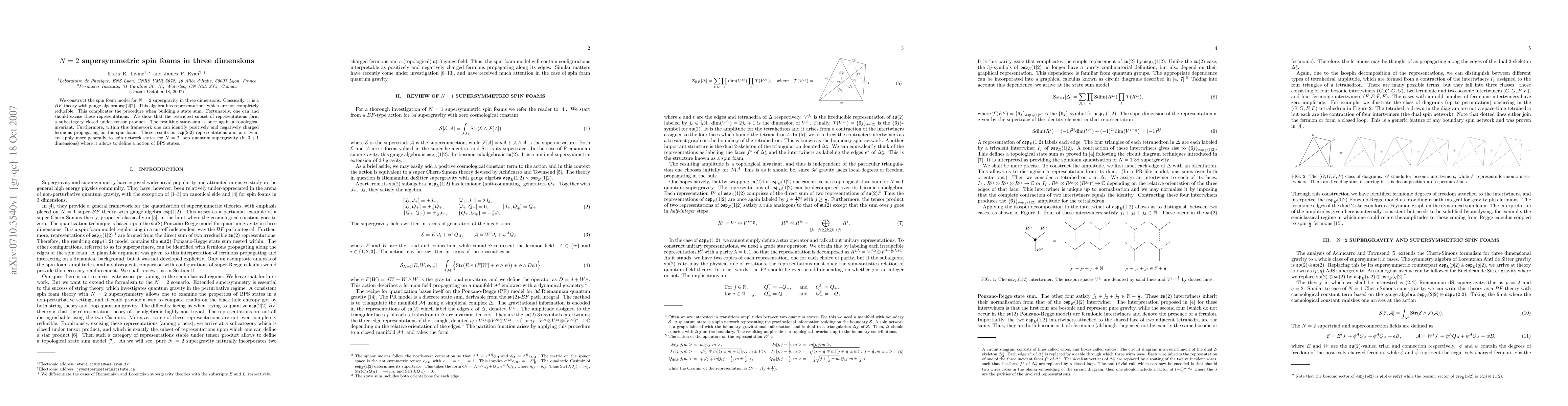 We construct the spin foam model for N=2 supergravity in three dimensions. Classically, it is a BF theory with gauge algebra osp(2|2). This algebra has representations which are not completely reducible. This complicates the procedure when building a state sum. Fortunately, one can and should excise these representations. We show that the restricted subset of representations form a subcategory closed under tensor product. The resulting state-sum is once again a topological invariant. Furthermore, within this framework one can identify positively and negatively charged fermions propagating on the spin foam. These results on osp(2|2) representations and intertwiners apply more generally to spin network states for N=2 loop quantum supergravity (in 3+1 dimensions) where it allows to define a notion of BPS states.