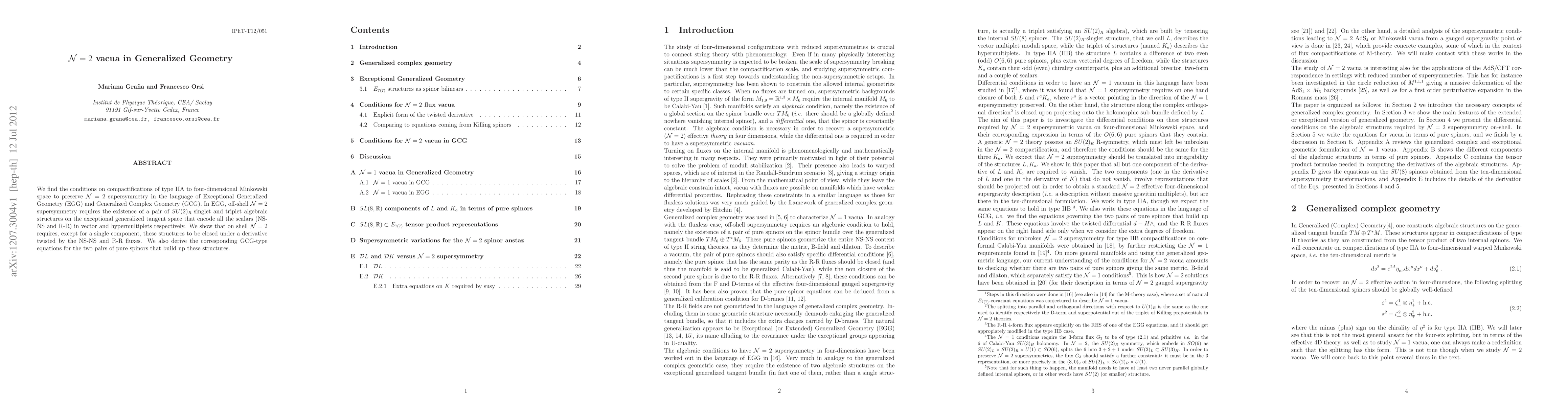 This paper investigates the conditions for preserving N=2 supersymmetry in type IIA compactifications using Exceptional Generalized Geometry (EGG) and Generalized Complex Geometry (GCG). It finds that off-shell N=2 supersymmetry necessitates specific algebraic structures on the exceptional generalized tangent space, while on-shell N=2 requires these structures to be closed under a derivative twisted by NS-NS and R-R fluxes.
