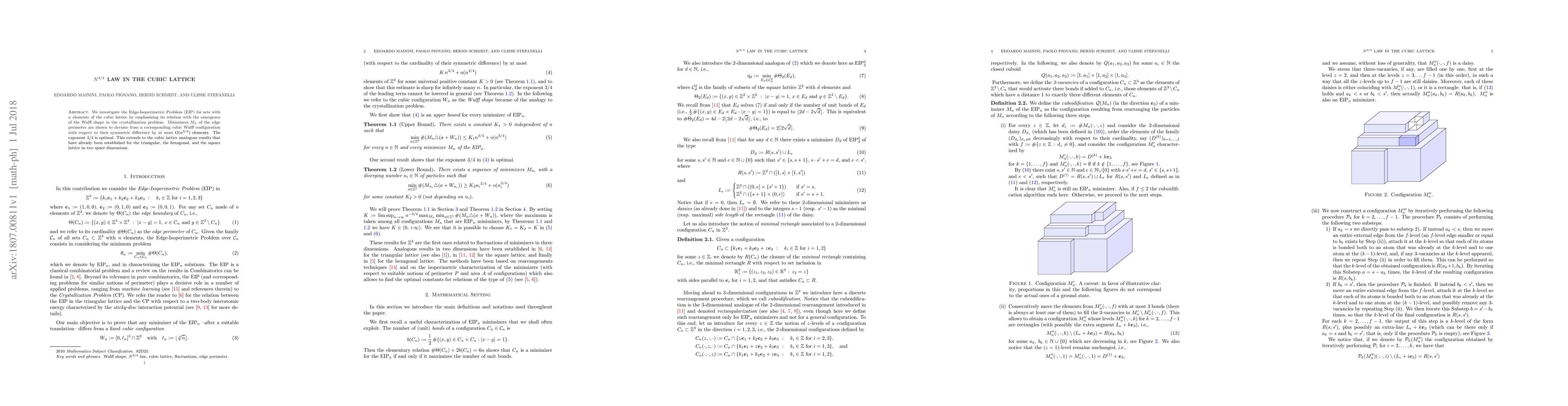 This research explores the Edge-Isoperimetric Problem in the cubic lattice, finding that minimizers deviate from a Wulff configuration by at most O(n^(3/4)) elements, with the 3/4 exponent being optimal. This result extends similar findings from 2D lattices to 3D cubic lattice.