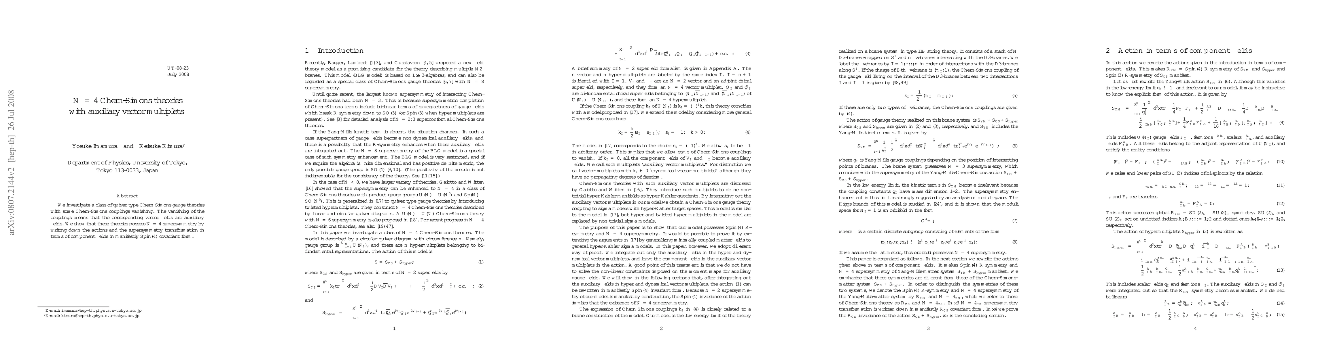 This paper examines N=4 supersymmetric Chern-Simons gauge theories featuring auxiliary vector multiplets where some Chern-Simons couplings vanish. The authors demonstrate N=4 supersymmetry through the construction of manifestly Spin(4) covariant actions and supersymmetry transformations.