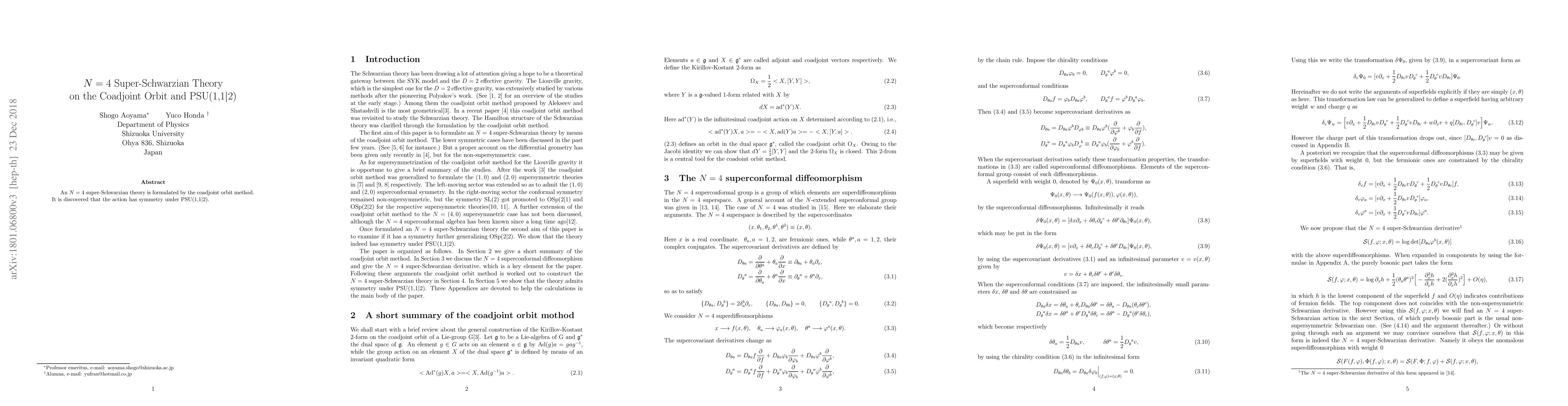 Summary: This paper formulates an N=4 super-Schwarzian theory using the coadjoint orbit method and identifies that the action exhibits symmetry under the supergroup PSU(1,1|2).