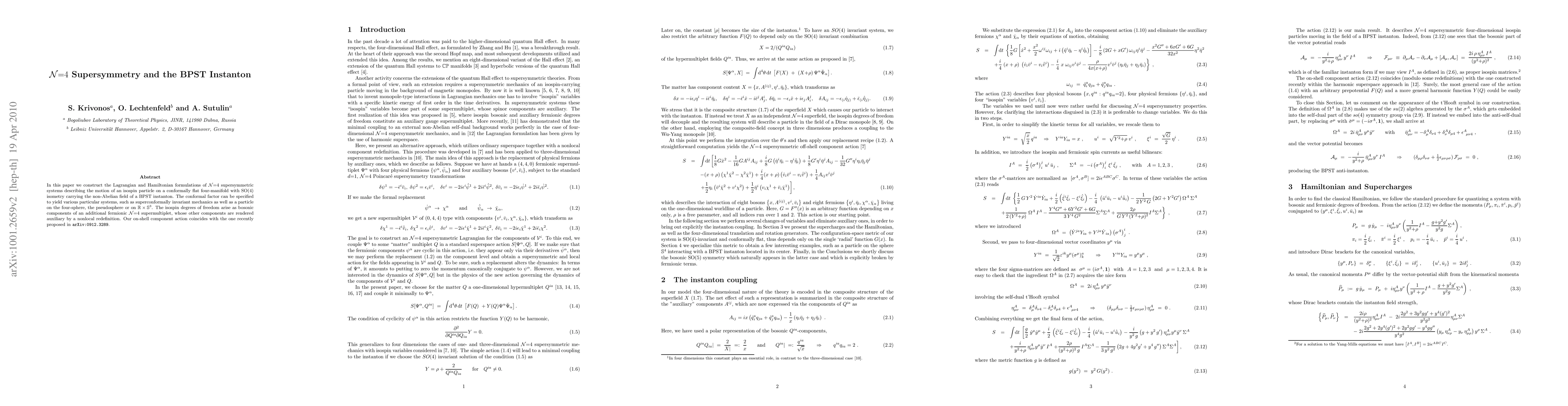 In this paper we construct the Lagrangian and Hamiltonian formulations of N=4 supersymmetric systems describing the motion of an isospin particle on a conformally flat four-manifold with SO(4) isometry carrying the non-Abelian field of a BPST instanton. The conformal factor can be specified to yield various particular systems, such as superconformally invariant mechanics as well as a particle on the four-sphere, the pseudosphere or on R x S^3. The isospin degrees of freedom arise as bosonic components of an additional fermionic N=4 supermultiplet, whose other components are rendered auxiliary by a nonlocal redefinition. Our on-shell component action coincides with the one recently proposed in arXiv:0912.3289.