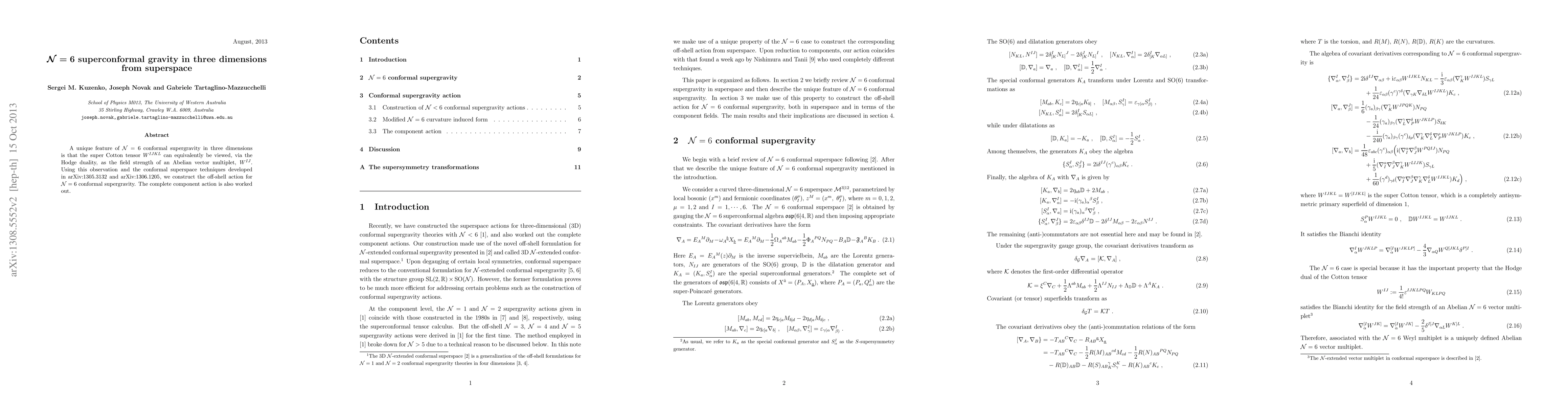 The paper constructs an off-shell action for N=6 conformal supergravity in three dimensions using conformal superspace techniques, leveraging the Hodge duality to reinterpret the super Cotton tensor as an Abelian vector multiplet field strength. The complete component action is also derived.