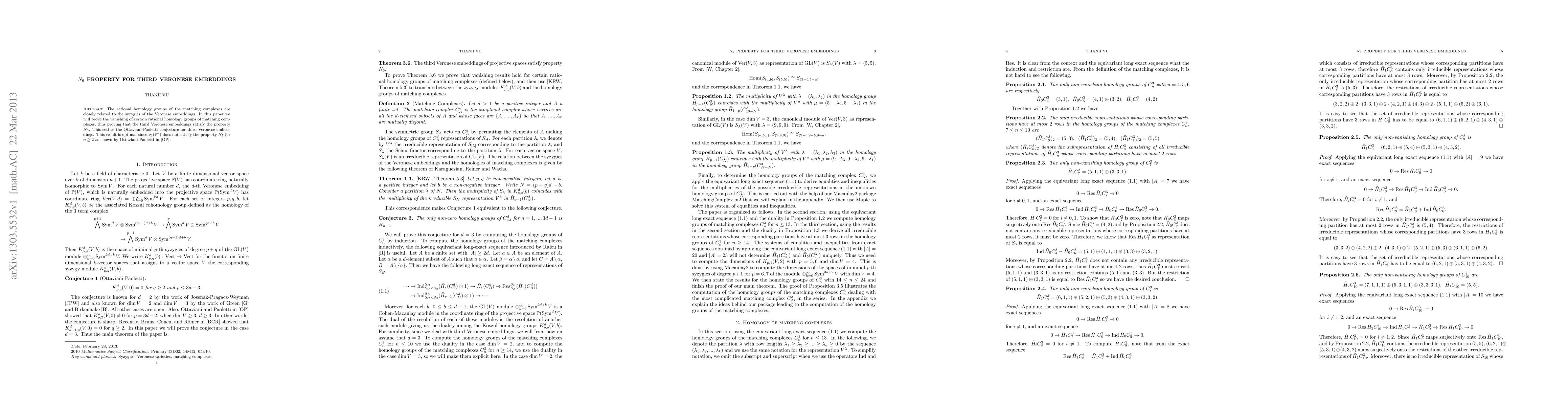 This paper proves the vanishing of specific rational homology groups for matching complexes, confirming that third Veronese embeddings satisfy the $N_6$ property and settling the Ottaviani-Paoletti conjecture. It also shows that third Veronese embeddings do not satisfy the $N_7$ property, establishing the optimality of the result.