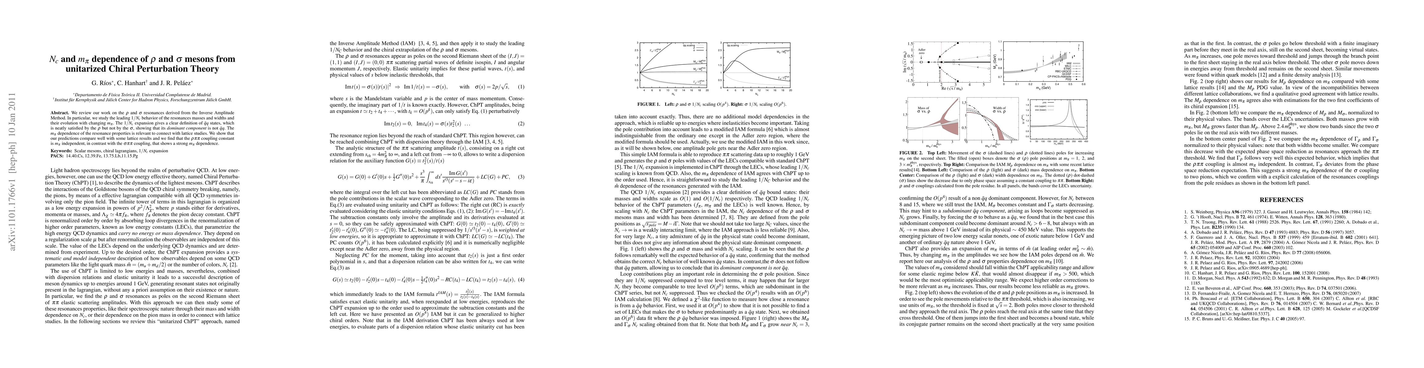 We review our work on the rho and sigma resonances derived from the Inverse Amplitude Method. In particular, we study the leading 1/N_c behavior of the resonances masses and widths and their evolution with changing m_pi. The 1/N_c expansion gives a clear definition of quark-antiquark states, which is neatly satisfied by the rho but not by the sigma, showing that its dominant component is not quark-antiquark. The m_pi dependence of the resonance properties is relevant to connect with lattice studies. We show that our predictions compare well with some lattice results and we find that the rho-pi-pi coupling constant is m_pi independent, in contrast with the sigma-pi-pi coupling, that shows a strong m_pi dependence.