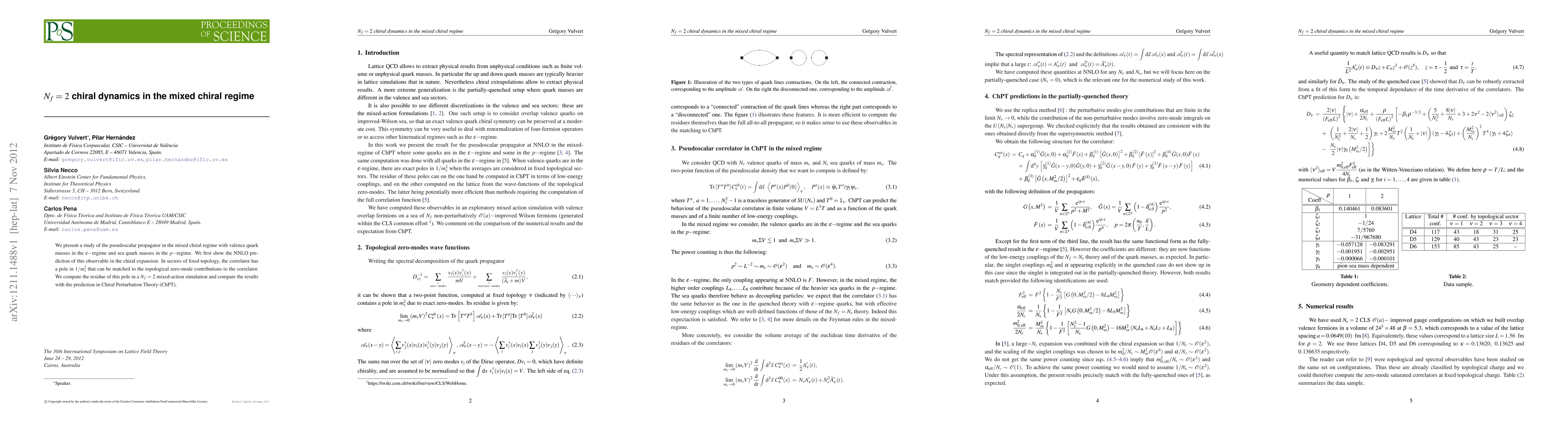 We present a study of the pseudoscalar propagator in the mixed chiral regime with valence quark masses in the \epsilon-regime and sea quark masses in the p-regime. We first show the NNLO prediction of this observable in the chiral expansion. In sectors of fixed topology, the correlator has a pole in 1/m_v^2 that can be matched to the topological zero-mode contributions to the correlator. We compute the residue of this pole in a N_f=2 mixed-action simulation and compare the results with the prediction in Chiral Perturbation Theory.