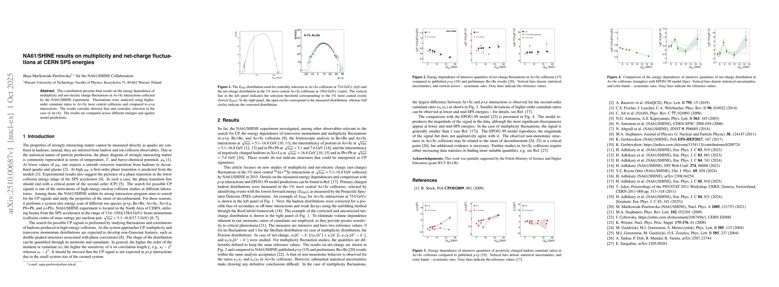The study analyzed multiplicity and net-charge fluctuations in Ar+Sc collisions using higher-order cumulant ratios, comparing results to p+p interactions and model predictions. Detector bias correction and centrality selection were applied to most central collisions at various SPS energies.