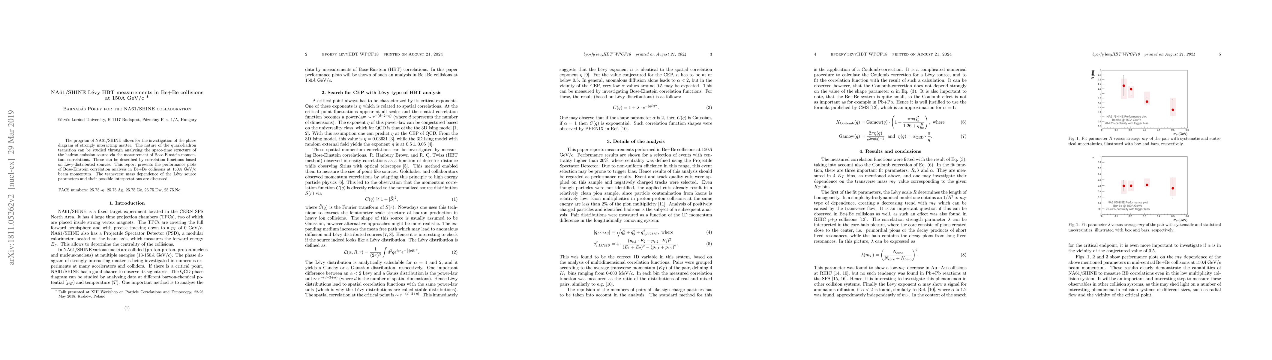 The program of NA61/SHINE allows for the investigation of the phase diagram of strongly interacting matter. The nature of the quark-hadron transition can be studied through analyzing the space-time structure of the hadron emission source via the measurement of Bose-Einstein momentum correlations. These can be described by correlation functions based on Levy-distributed sources. This report presents the performance plots of Bose-Einstein correlation analysis in Be+Be collisions at 150A GeV/c beam momentum. The transverse mass dependence of the Levy source parameters and their possible interpretations are discussed.