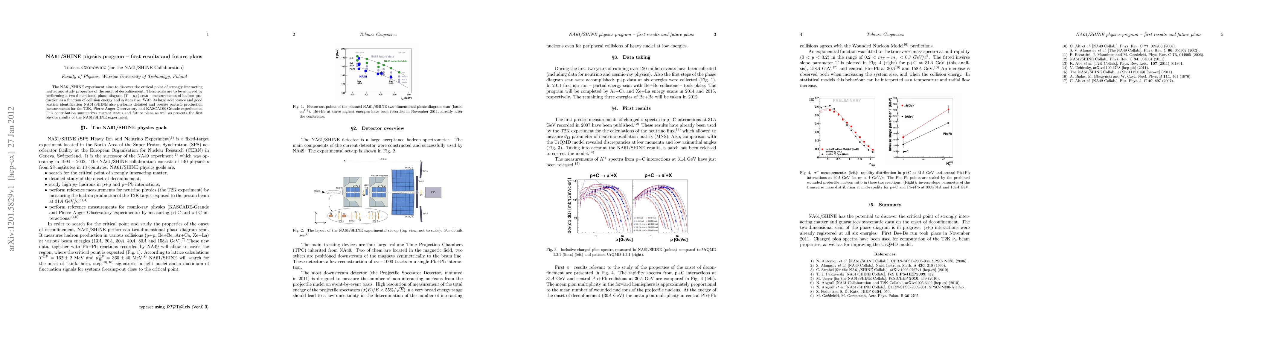 The NA61/SHINE experiment seeks to uncover the critical point of strongly interacting matter and investigate the onset of deconfinement through a T-μB scan. Initial results have been obtained, and future plans include further exploration of the phase diagram and support for other major experiments.
