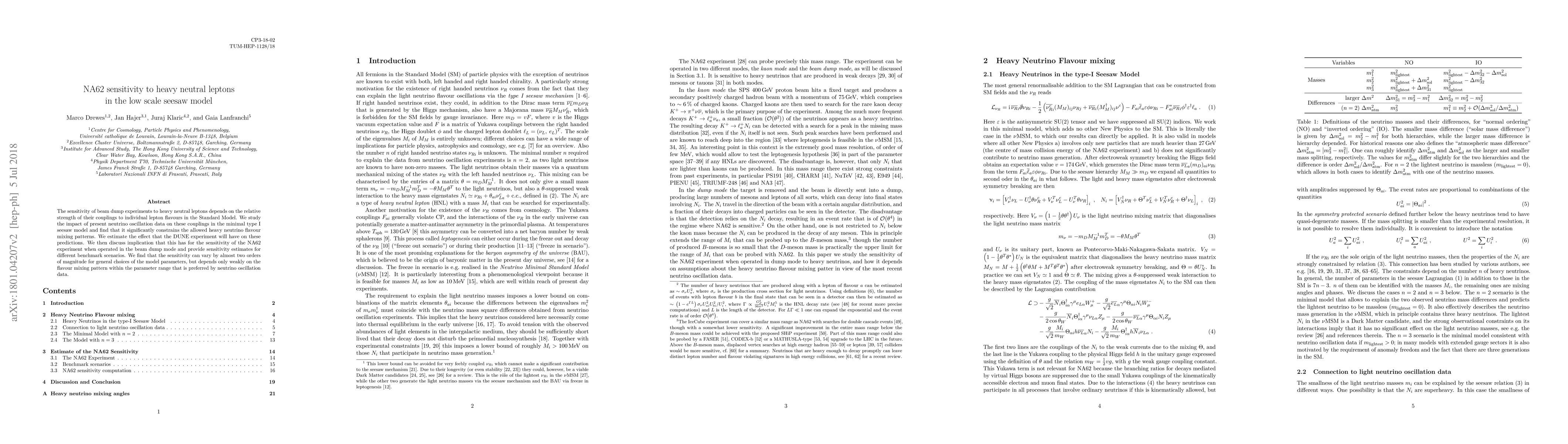 This paper investigates the sensitivity of the NA62 experiment to heavy neutral leptons in the context of the low scale seesaw model, finding that current neutrino oscillation data significantly constrains the flavour mixing patterns. The study estimates the impact of the DUNE experiment and concludes that NA62's sensitivity can vary by almost two orders of magnitude, depending weakly on the preferred flavour mixing patterns.