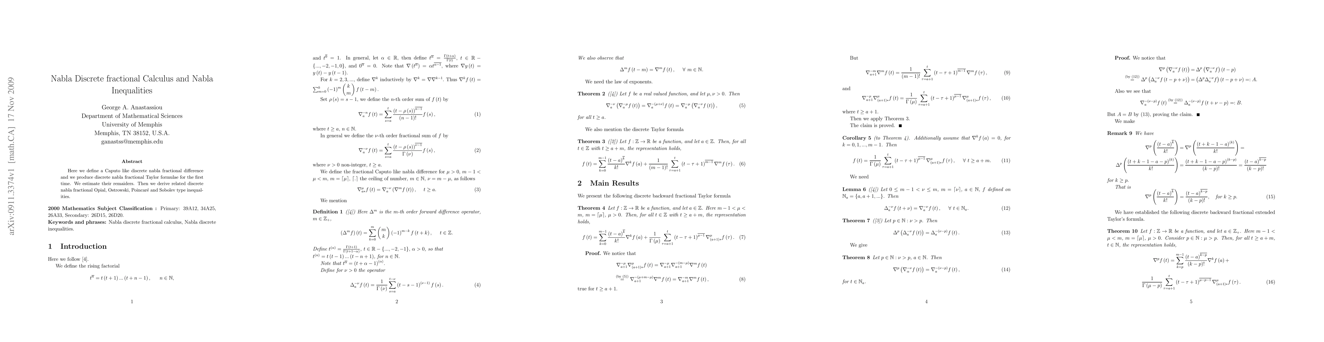 This paper introduces a Caputo-like discrete nabla fractional difference and presents the first discrete nabla fractional Taylor formulae, along with their remainders. It also derives several related discrete nabla fractional inequalities, including Opial, Ostrowski, Poincaré, and Sobolev types.