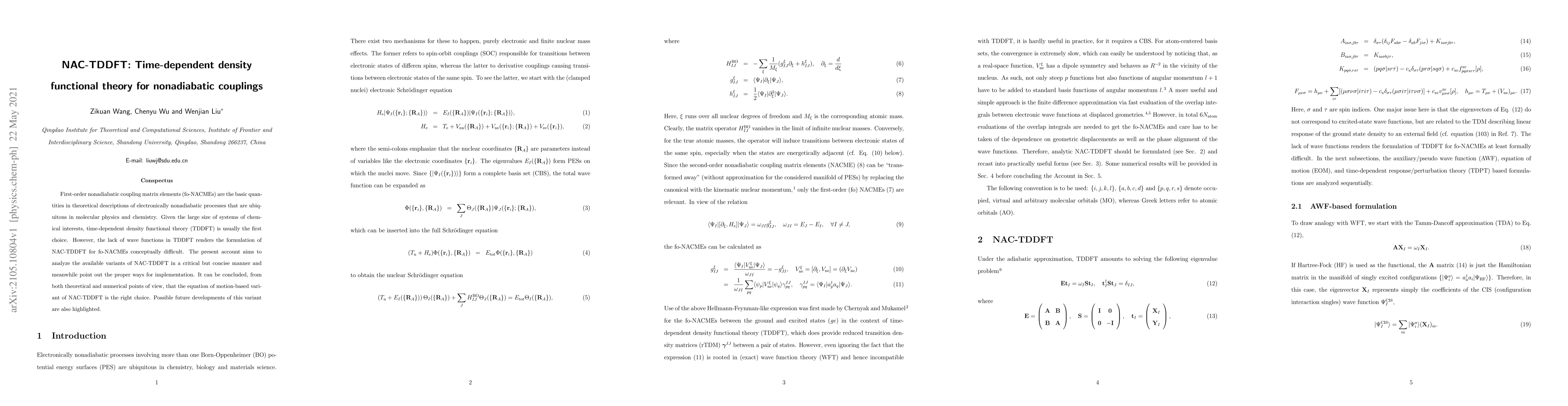 First-order nonadiabatic coupling matrix elements (fo-NACMEs) are the basic quantities in theoretical descriptions of electronically nonadiabatic processes that are ubiquitous in molecular physics and chemistry. Given the large size of systems of chemical interests, time-dependent density functional theory (TDDFT) is usually the first choice. However, the lack of wave functions in TDDFT renders the formulation of NAC-TDDFT for fo-NACMEs conceptually difficult. The present account aims to analyze the available variants of NAC-TDDFT in a critical but concise manner and meanwhile point out the proper ways for implementation. It can be concluded, from both theoretical and numerical points of view, that the equation of motion-based variant of NAC-TDDFT is the right choice. Possible future developments of this variant are also highlighted.