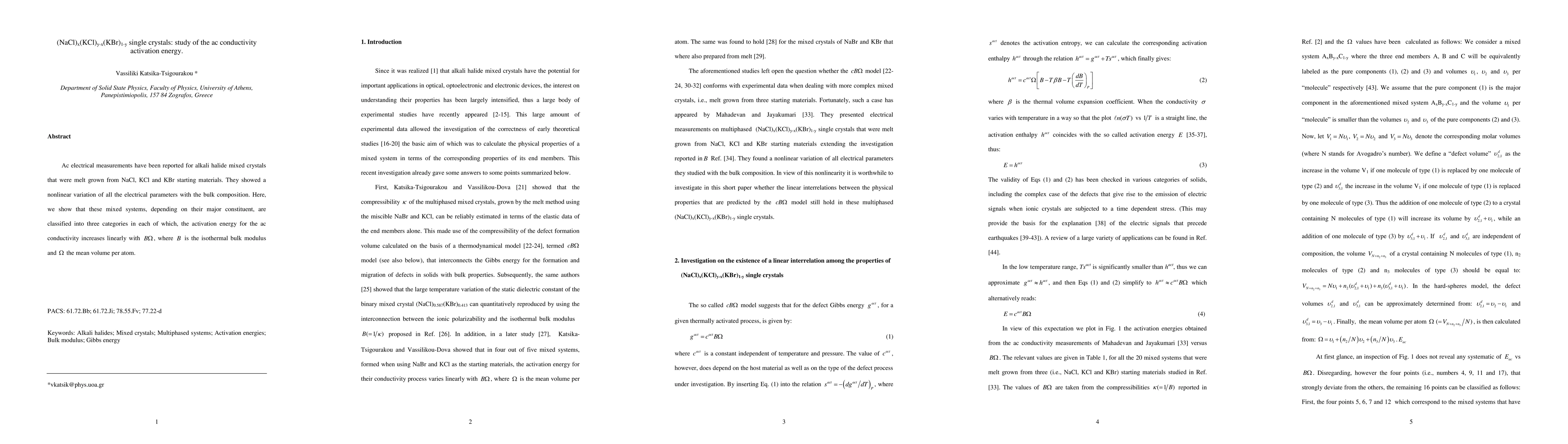 Ac electrical measurements have been reported for alkali halide mixed crystals that were melt grown from NaCl, KCl and KBr starting materials. They showed a nonlinear variation of all the electrical parameters with the bulk composition. Here, we show that these mixed systems, depending on their major constituent, are classified into three categories in each of which, the activation energy for the ac conductivity increases linearly with B$\Omega$, where B is the isothermal bulk modulus and $\Omega$ the mean volume per atom.