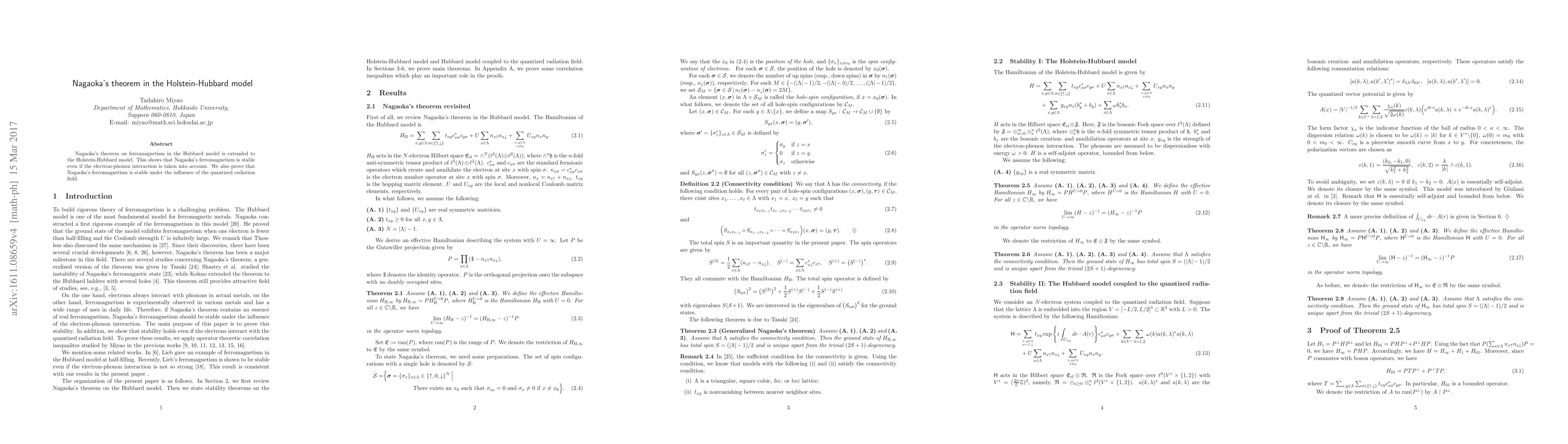 The research extends Nagaoka's theorem on ferromagnetism in the Hubbard model to the Holstein-Hubbard model, proving the stability of Nagaoka's ferromagnetism even with electron-phonon interaction and under quantized radiation field.