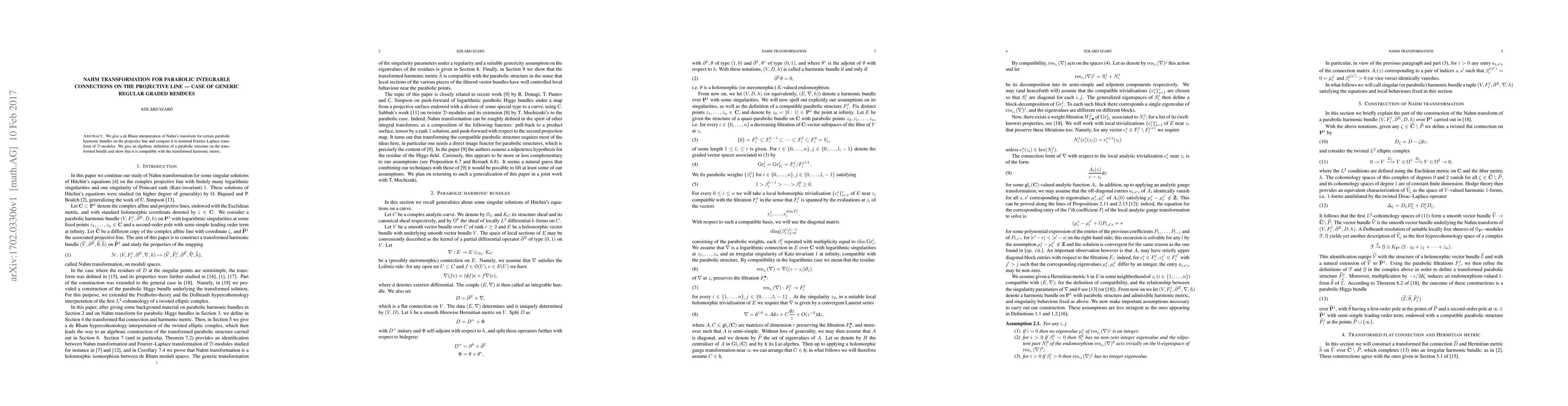 Summary: This paper provides a de Rham interpretation of Nahm's transform for parabolic harmonic bundles on the projective line, comparing it to minimal Fourier-Laplace transforms of $\mathcal{D}$-modules, and establishes an algebraic definition for the parabolic structure on the transformed bundle that maintains compatibility with the harmonic metric.