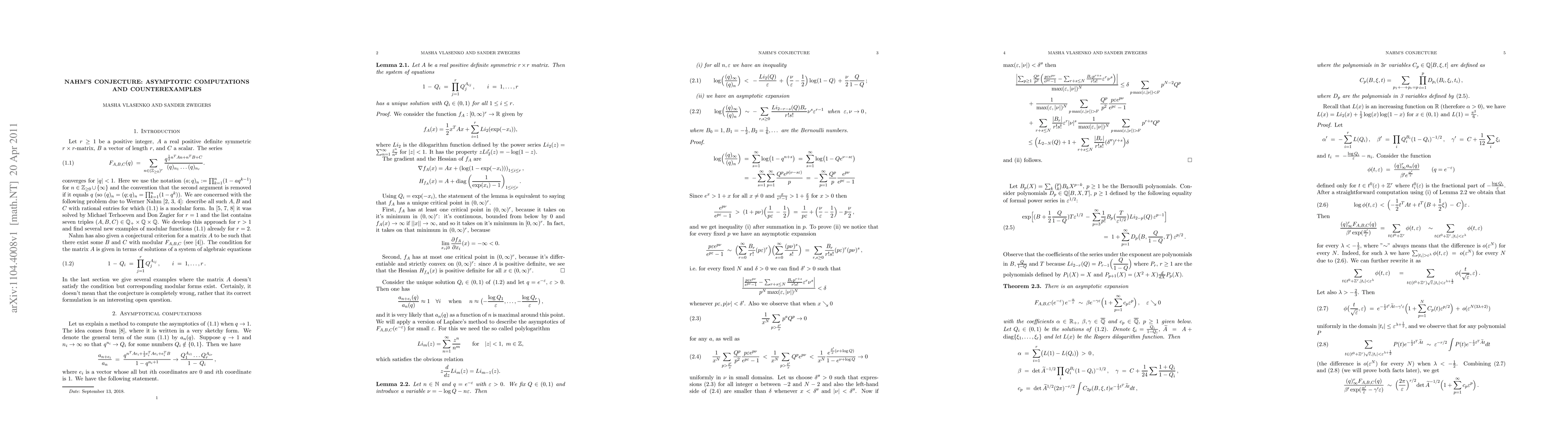 Researchers extended a proof of Nahm's Conjecture to r>1, finding new examples of modular forms and counterexamples, while developing a method for tackling the conjecture in higher dimensions.
