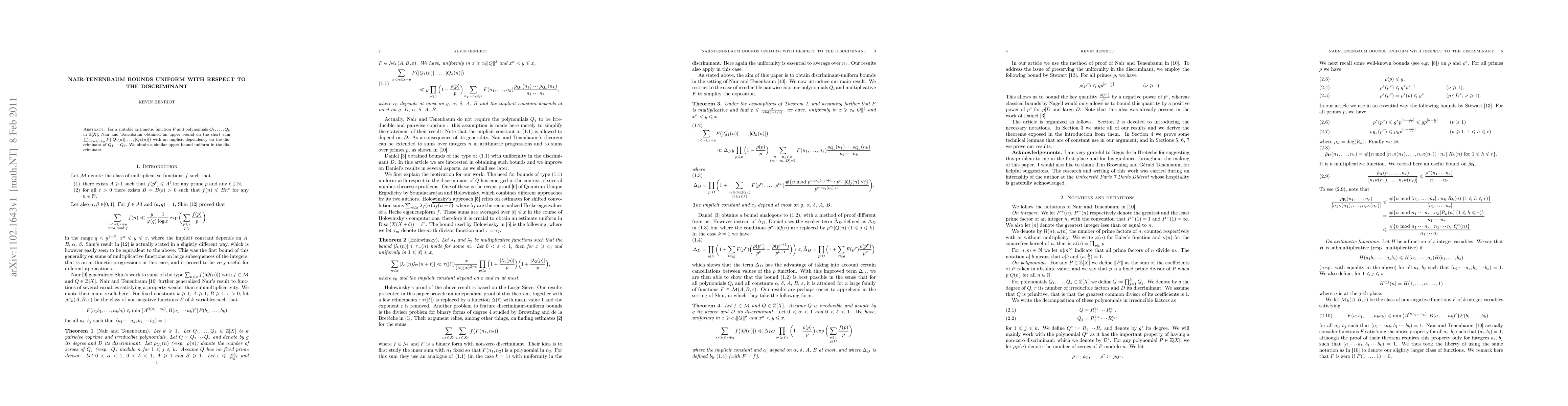 A common problem in analytic number theory is to bound the sum of an arithmetic function over a set of integers. Nair and Tenenbaum found a very general bound that applies to short sums of a multivariable arithmetic function over polynomial values, under certain standard conditions on the growth of that function. Their bound features an implicit dependency on the discriminant of the relevant polynomial. In our paper we obtain an analogous bound with an explicit dependency on the discriminant, which is optimal in the discriminant aspect.