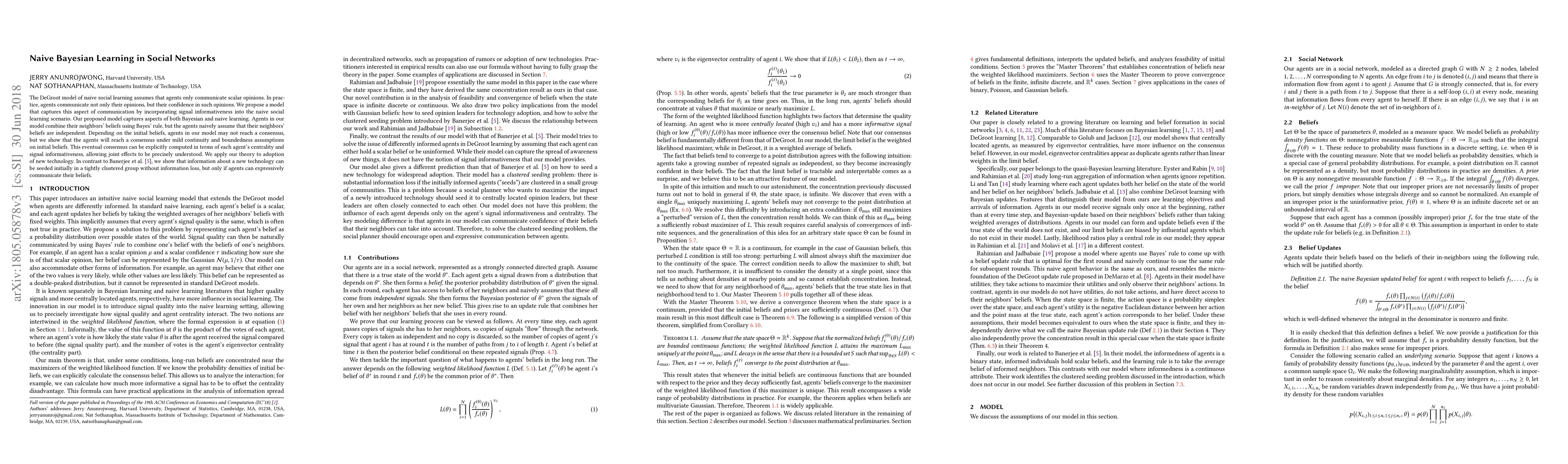 Researchers propose a new model of social learning that incorporates confidence in opinions, allowing for more accurate predictions of eventual consensus. They apply their theory to technology adoption, showing that initial seeding can occur without information loss if agents express confidence in their beliefs.