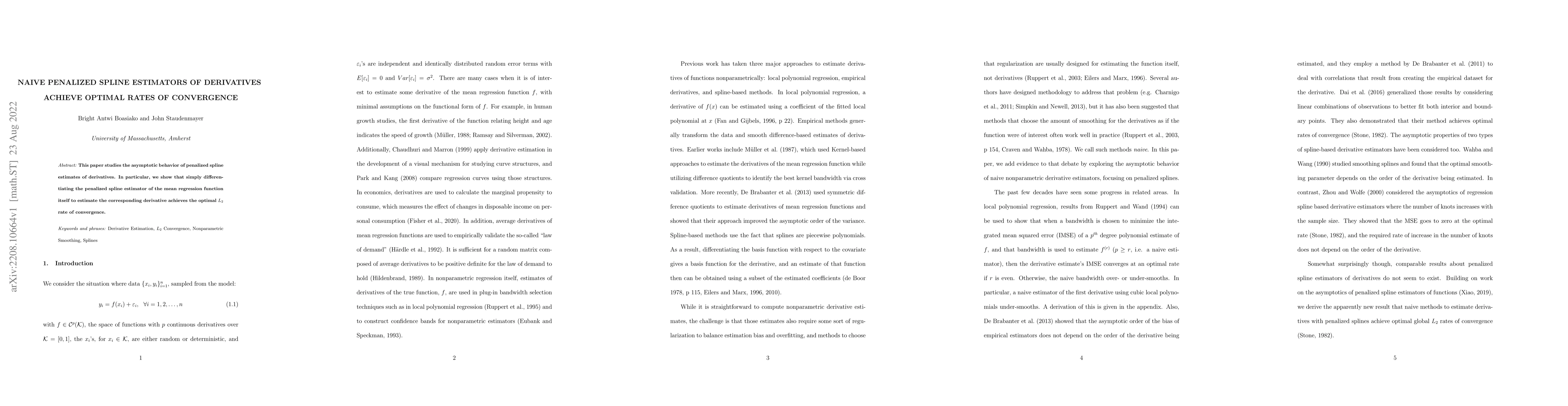 This paper demonstrates that naively differentiating penalized spline estimators of mean regression functions yields optimal L2 convergence rates for the estimated derivatives. The simplicity of this approach achieves the best possible asymptotic performance.