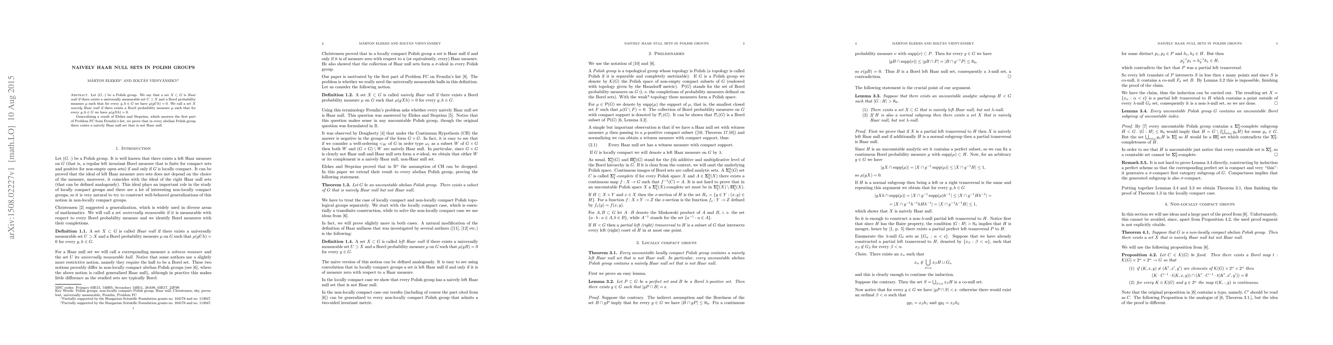 Let $(G,\cdot)$ be a Polish group. We say that a set $X \subset G$ is Haar null if there exists a universally measurable set $U \supset X$ and a Borel probability measure $\mu$ such that for every $g, h \in G$ we have $\mu(gUh)=0$. We call a set $X$ naively Haar null if there exists a Borel probability measure $\mu$ such that for every $g, h \in G$ we have $\mu(gXh)=0$. Generalizing a result of Elekes and Stepr\=ans, which answers the first part of Problem FC from Fremlin's list, we prove that in every abelian Polish group there exists a naively Haar null set that is not Haar null.