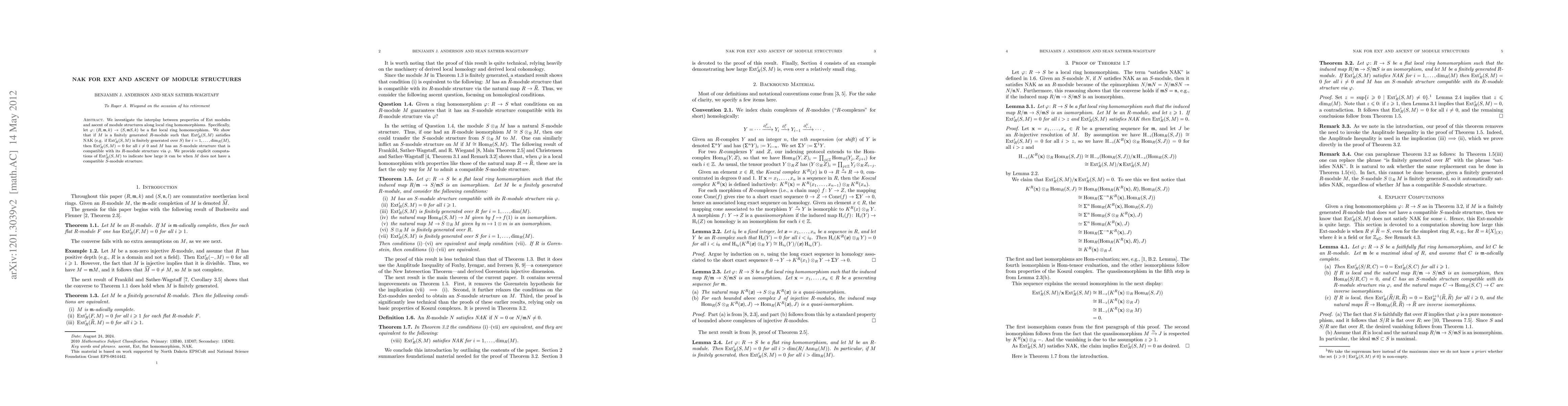 This paper explores the relationship between Ext module properties and the transfer of module structures through flat local ring homomorphisms. It demonstrates that if certain Ext modules of a finitely generated module over a ring have the NAK property, then the module retains a compatible module structure over the target ring.