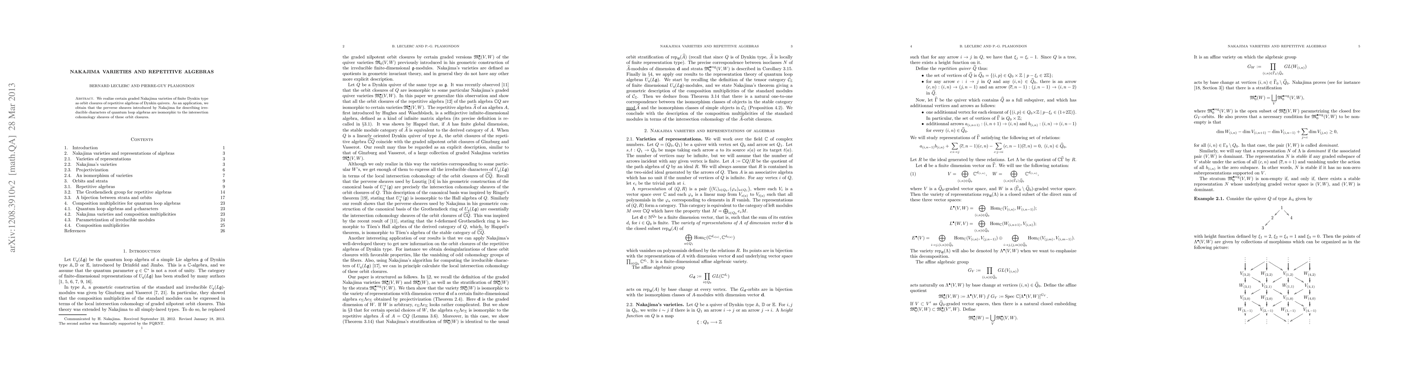 Researchers have identified a connection between Nakajima varieties and repetitive algebras, showing that certain Nakajima varieties can be represented as orbit closures of repetitive algebras, with implications for understanding irreducible characters of quantum loop algebras.