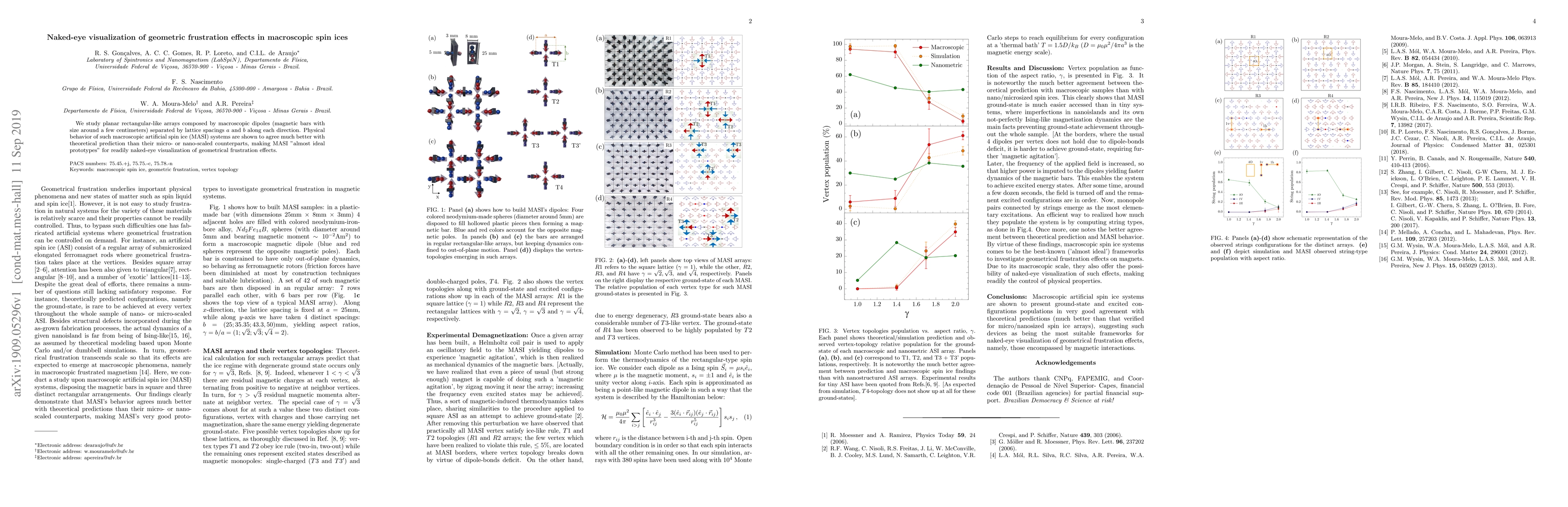 We study planar rectangular-like arrays composed by macroscopic dipoles (magnetic bars with size around a few centimeters) separated by lattice spacing a and b along each direction. Physical behavior of such macroscopic artificial spin ice (MASI) systems are shown to agree much better with theoretical prediction than their micro- or nano-scaled counterparts, making MASI "almost ideal prototypes" for readily naked-eye visualization of geometrical frustration effects.