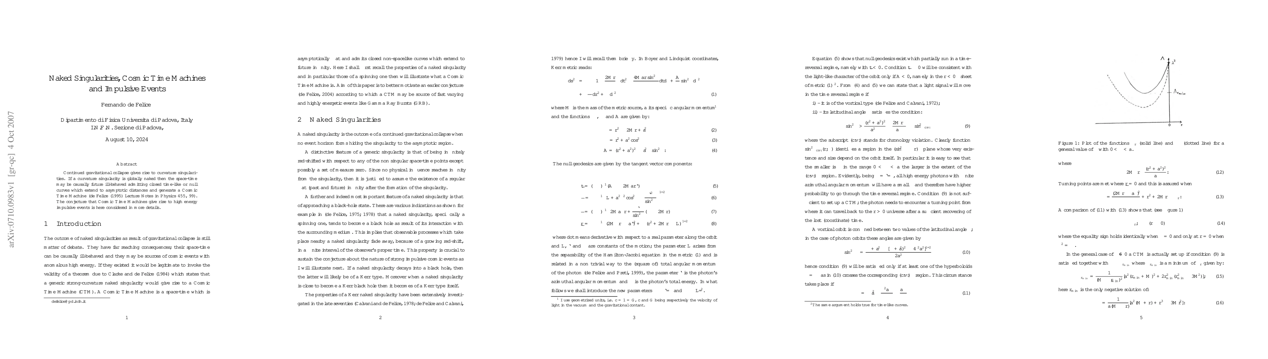 Continued gravitational collapse gives rise to curvature singularities. If a curvature singularity is globally naked then the space-time may be causally future ill-behaved admitting closed time-like or null curves which extend to asymptotic distances and generate a Cosmic Time Machine (de Felice (1995) Lecture Notes in Physics 455, 99). The conjecture that Cosmic Time Machines give rise to high energy impulsive events is here considered in more details.