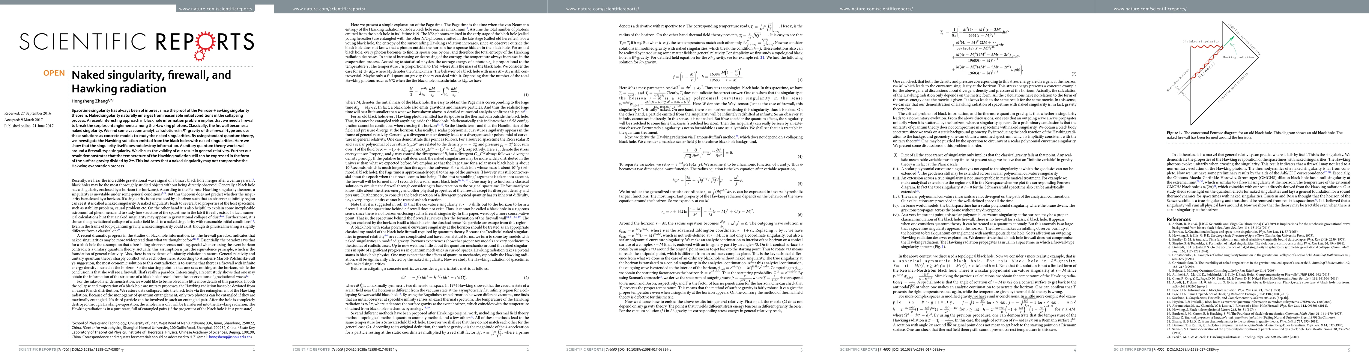 This paper explores the implications of naked singularities in the context of black hole information and Hawking radiation, proposing that a firewall may be necessary to resolve entanglement issues. The study finds that naked singularities do not destroy information and that Hawking radiation can still be described by the surface gravity formula, suggesting that the evaporation process remains intact.