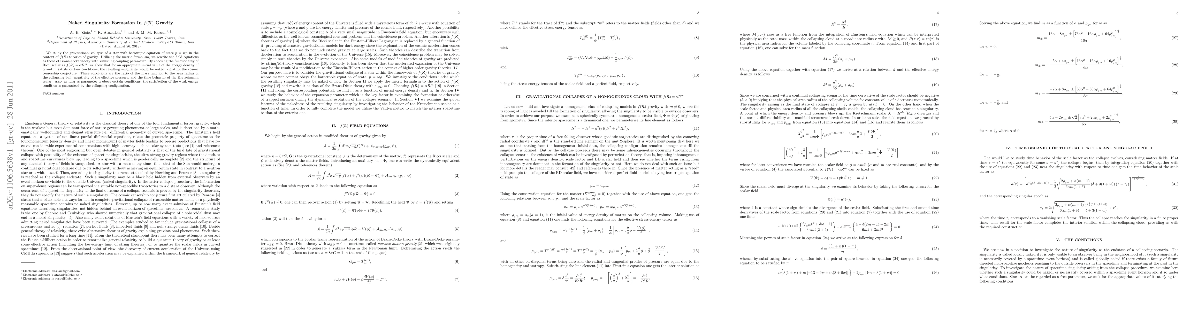 Researchers investigate how certain conditions in f(R) gravity theories lead to naked singularities, which could potentially violate the cosmic censorship conjecture, and find that these conditions include specific ratios of mass and area radius, negativity of effective pressure, and time behavior of the Kretschmann scalar.