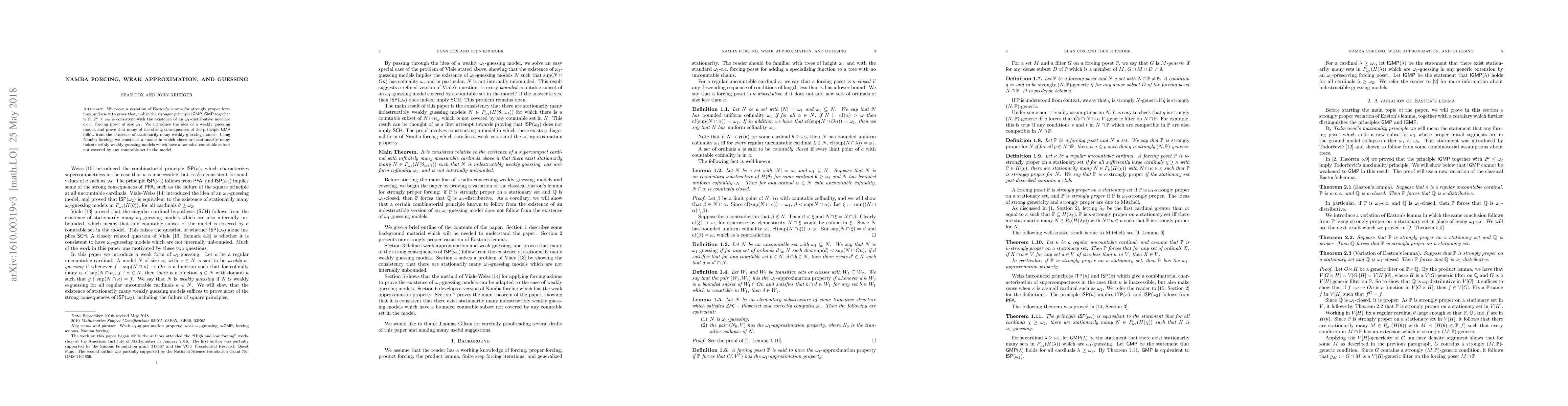 The paper employs a combination of set theory, forcing techniques, and analysis of weak approximation properties to prove key results about Namba forcing, weak approximation, and guessing models.