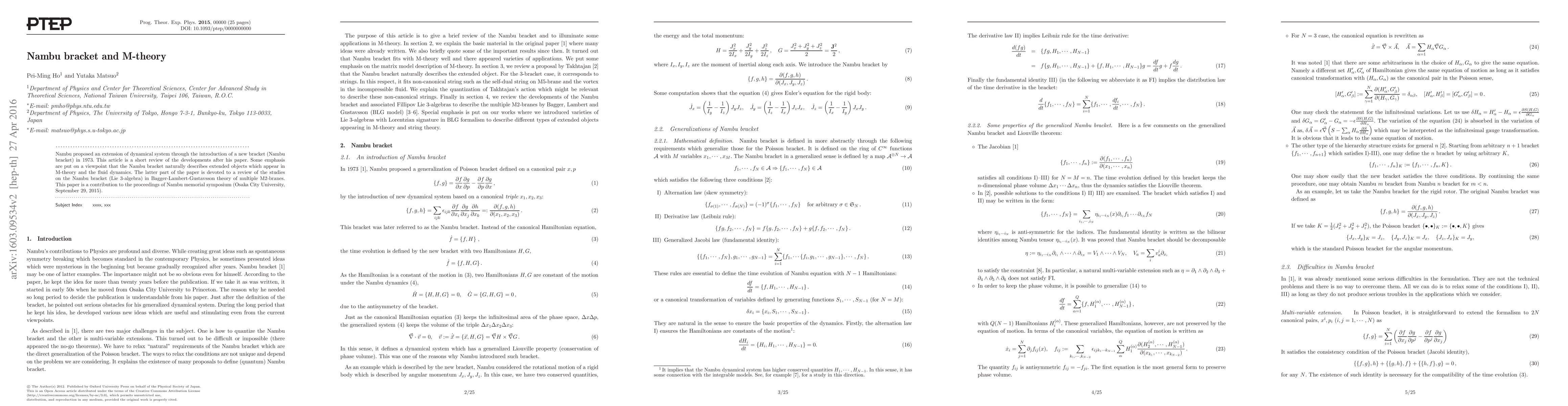 This paper reviews the evolution of Nambu's bracket since its introduction in 1973, highlighting its relevance to extended objects in M-theory and fluid dynamics. It also examines the Nambu bracket's role in the Bagger-Lambert-Gustavsson theory of multiple M2-branes.