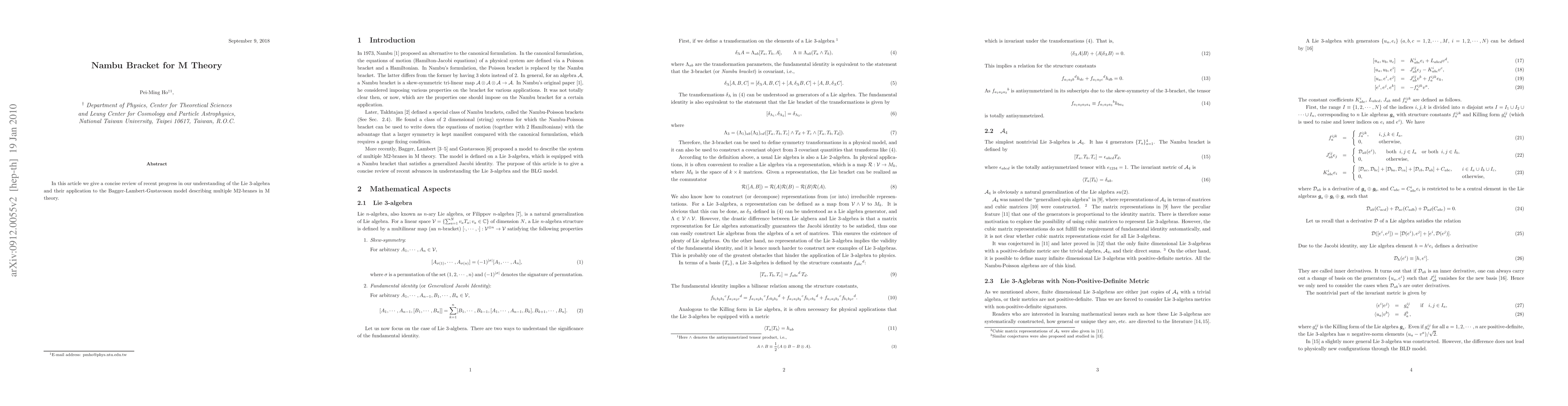 This paper summarizes advancements in understanding the Lie 3-algebra, crucial for describing multiple M2-branes in M theory through the Bagger-Lambert-Gustavsson model, highlighting the application of Nambu bracket.