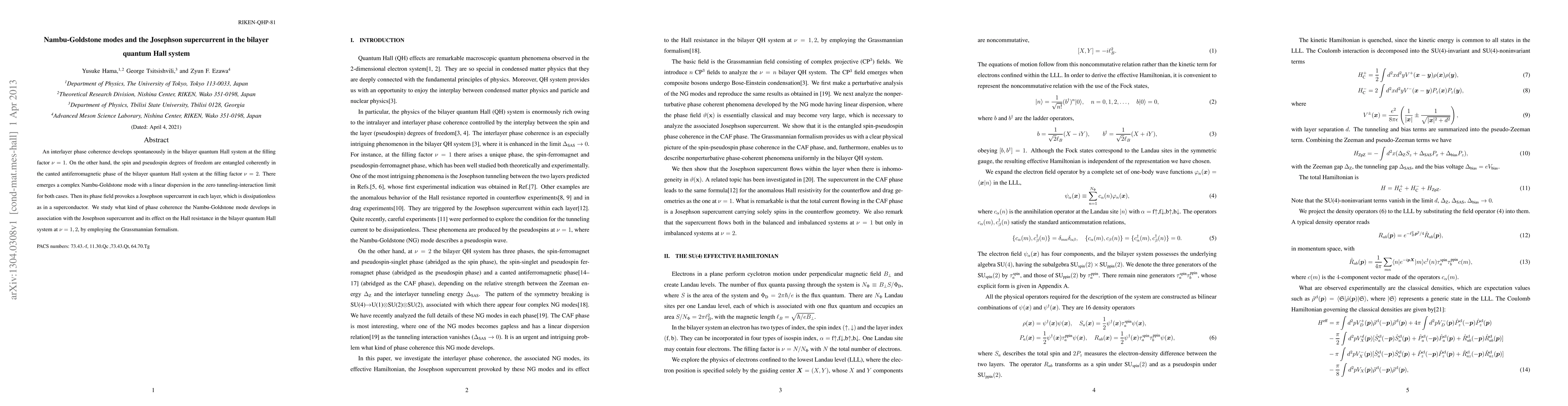 This paper investigates the spontaneous interlayer phase coherence in bilayer quantum Hall systems at filling factors $\nu =1$ and $\nu =2$, revealing a complex Nambu-Goldstone mode with linear dispersion. It explores how this mode induces a Josephson supercurrent and its effect on Hall resistance, using the Grassmannian formalism.