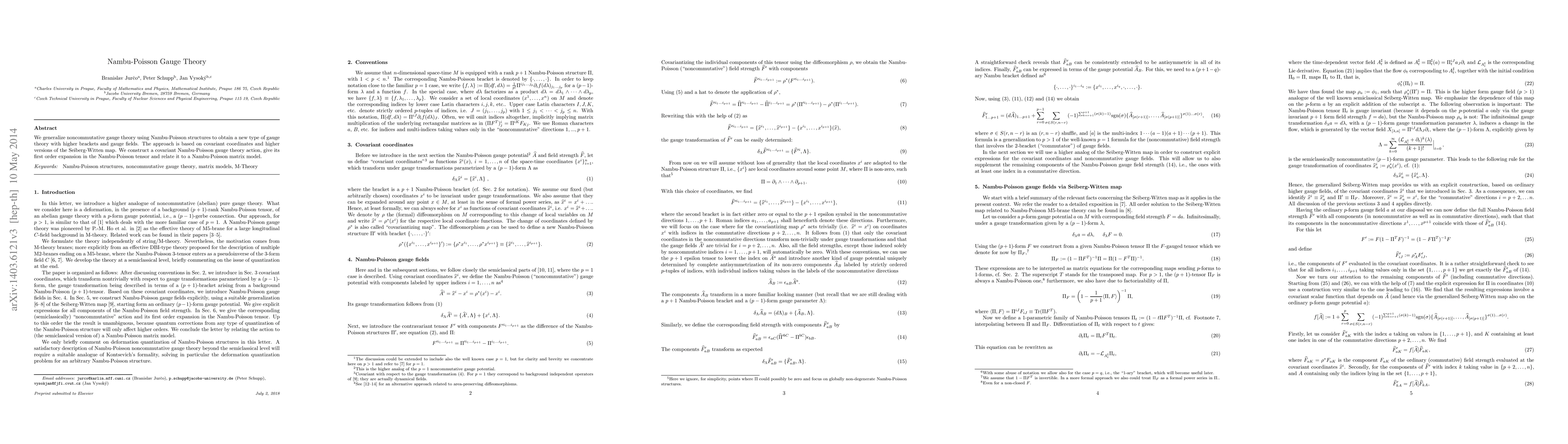 Summary: This paper generalizes noncommutative gauge theory through Nambu-Poisson structures, introducing a new gauge theory framework with higher brackets and covariant fields. It constructs a covariant Nambu-Poisson gauge theory action and relates it to a Nambu-Poisson matrix model.