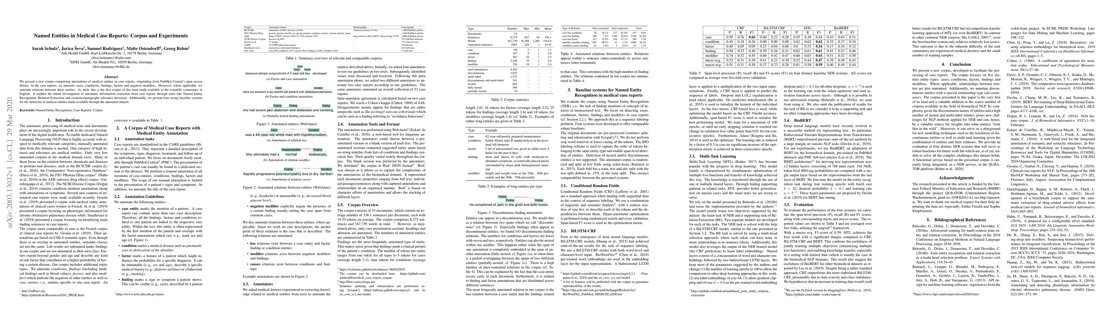 This paper introduces a new annotated corpus of medical entities from PubMed Central case reports, facilitating Named Entity Recognition, Relation Extraction, and relevance detection. The corpus includes annotations for cases, conditions, findings, factors, and negations, along with baseline systems for entity detection.