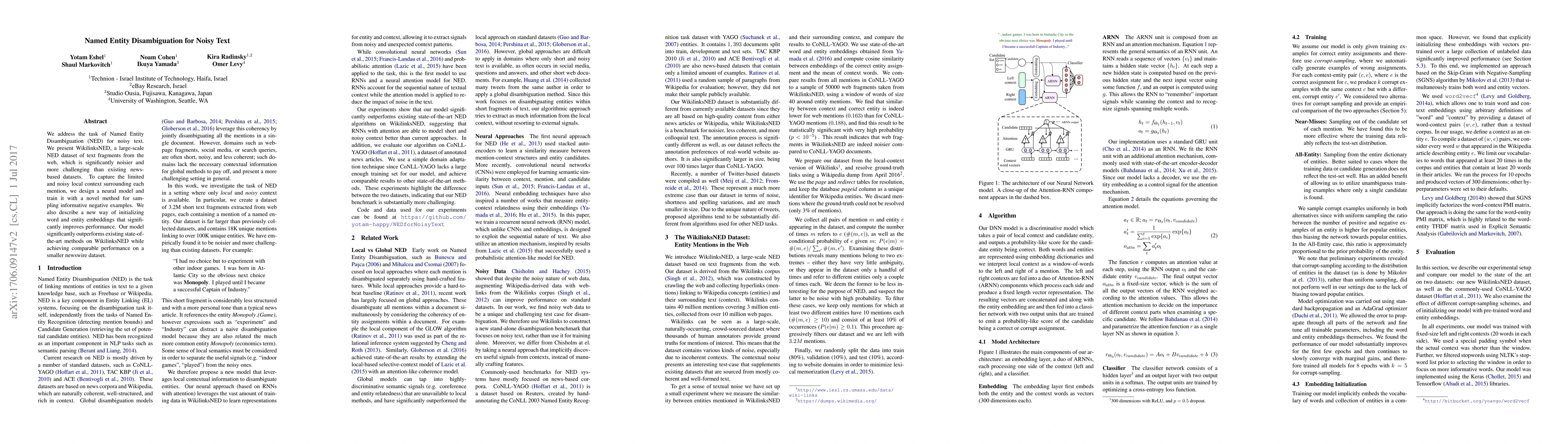 Researchers present a new dataset and neural model for Named Entity Disambiguation in noisy text, achieving better performance than existing methods on a challenging dataset, WikilinksNED.