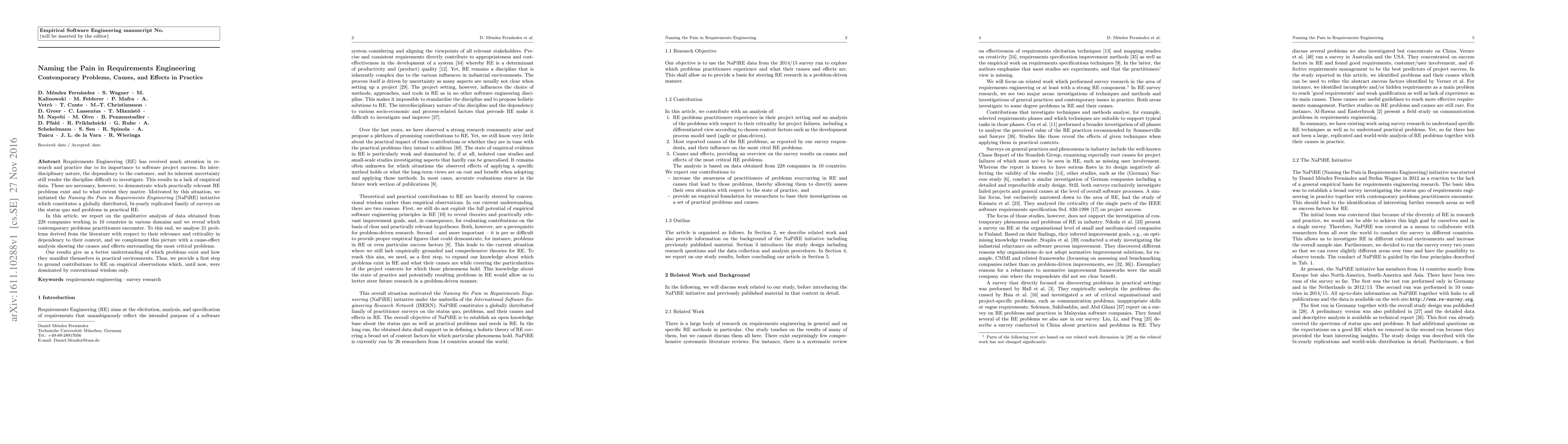 This paper reports on the Naming the Pain in Requirements Engineering (NaPiRE) initiative, which conducts bi-yearly surveys to identify and analyze contemporary problems in practical RE. The study reveals 21 critical problems based on data from 228 companies across 10 countries, providing empirical insights into the causes and effects of the most pressing issues in requirements engineering.